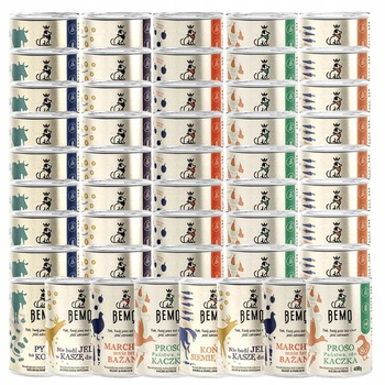 Mokra karma Bemo to doskonałe rozwiązanie dla psów, które preferują soczyste posiłki o intensywnym aromacie. Dzięki dużej zawartości mięsa i naturalnych składników, mokra karma jest nie tylko smaczna, ale też bogata w wartości odżywcze. Wysoka wilgotność posiłków wspiera nawodnienie organizmu, co ma szczególne znaczenie u psów starszych lub tych, które piją mniej wody. Bemo mokra karma dla psów występuje w wielu smakach – m.in. wołowina, drób, ryby czy jagnięcina – dzięki czemu można łatwo dopasować dietę do preferencji pupila. To pełnowartościowe pożywienie, które urozmaica codzienną dietę i wspiera zdrowie psa.