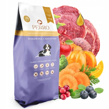 Karmy bezzbożowe Perro zostały opracowane z myślą o psach, które nie tolerują zbóż lub potrzebują diety bliższej naturalnym potrzebom żywieniowym. Zamiast zbóż zastosowano wartościowe warzywa i owoce, które wspierają trawienie i dostarczają energii bez obciążania organizmu.