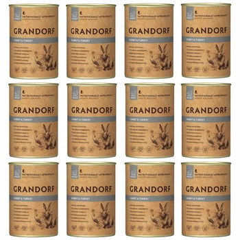 GRANDORF DOG zdrowa karma mokra dla psa Królik Indyk 12 x 400g Krótki termin 02.05.2025