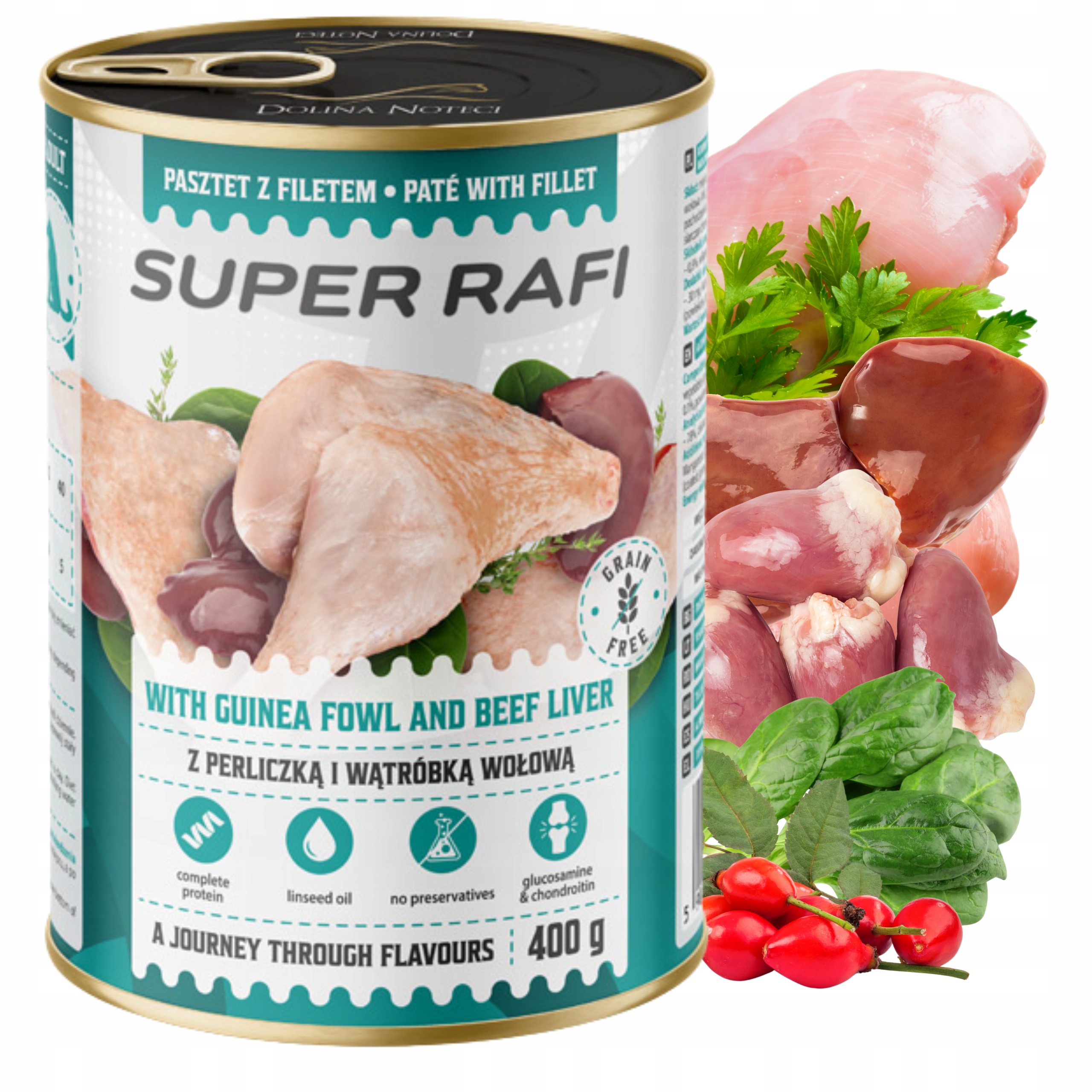 Dolina Noteci Super Rafi karma mokra dla psa perliczka wątróbka wołowa 400g