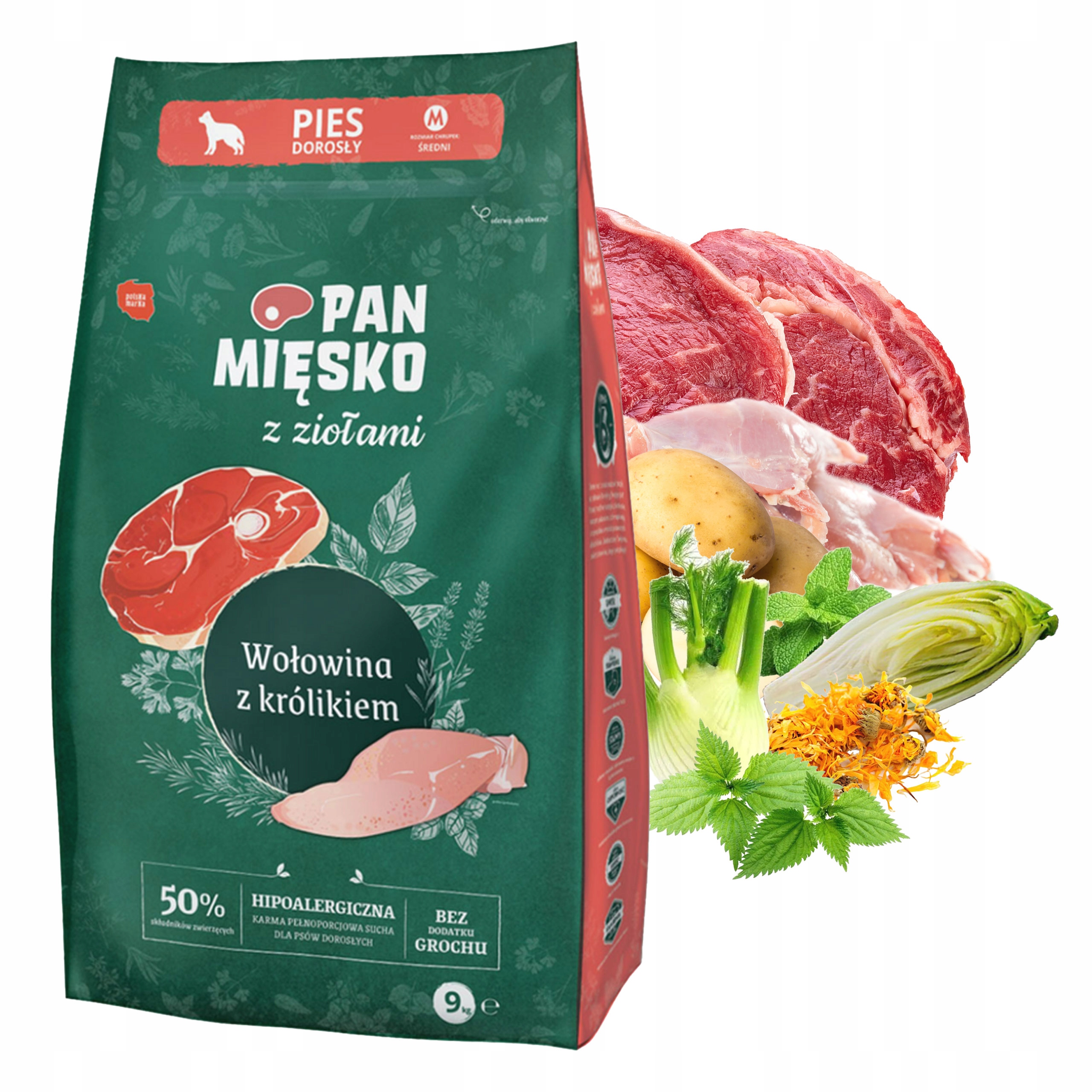 PAN MIĘSKO Karma sucha dla psa z Ziołami Wołowina Królik 9kg