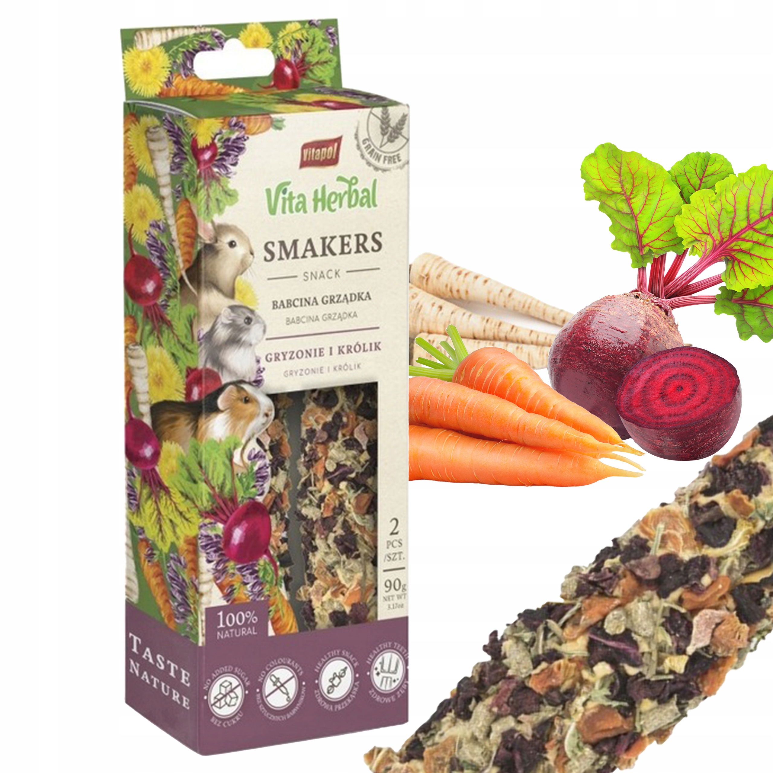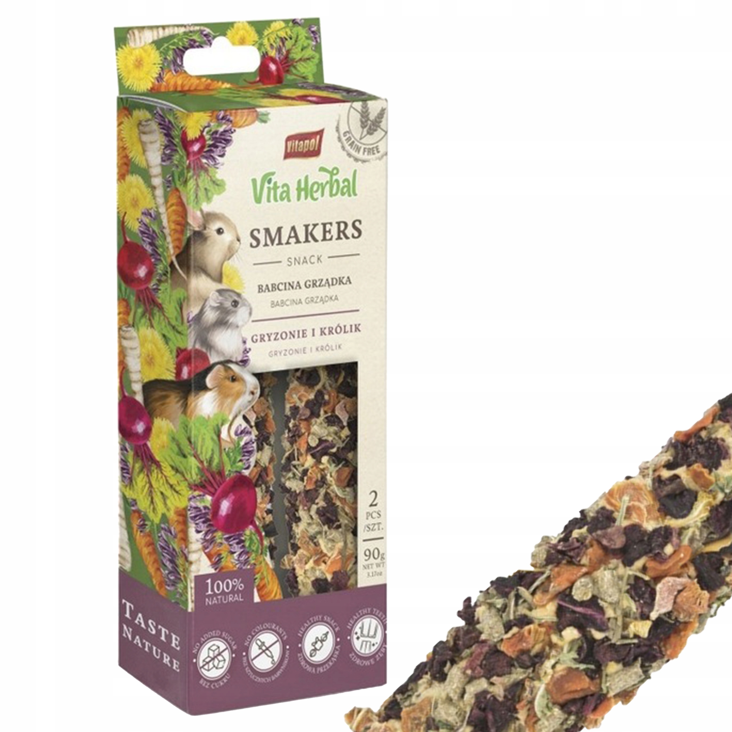 Smakers Vita Herbal to w 100% bezzbożowy przysmak idealny dla każdego gryzonia i królika.